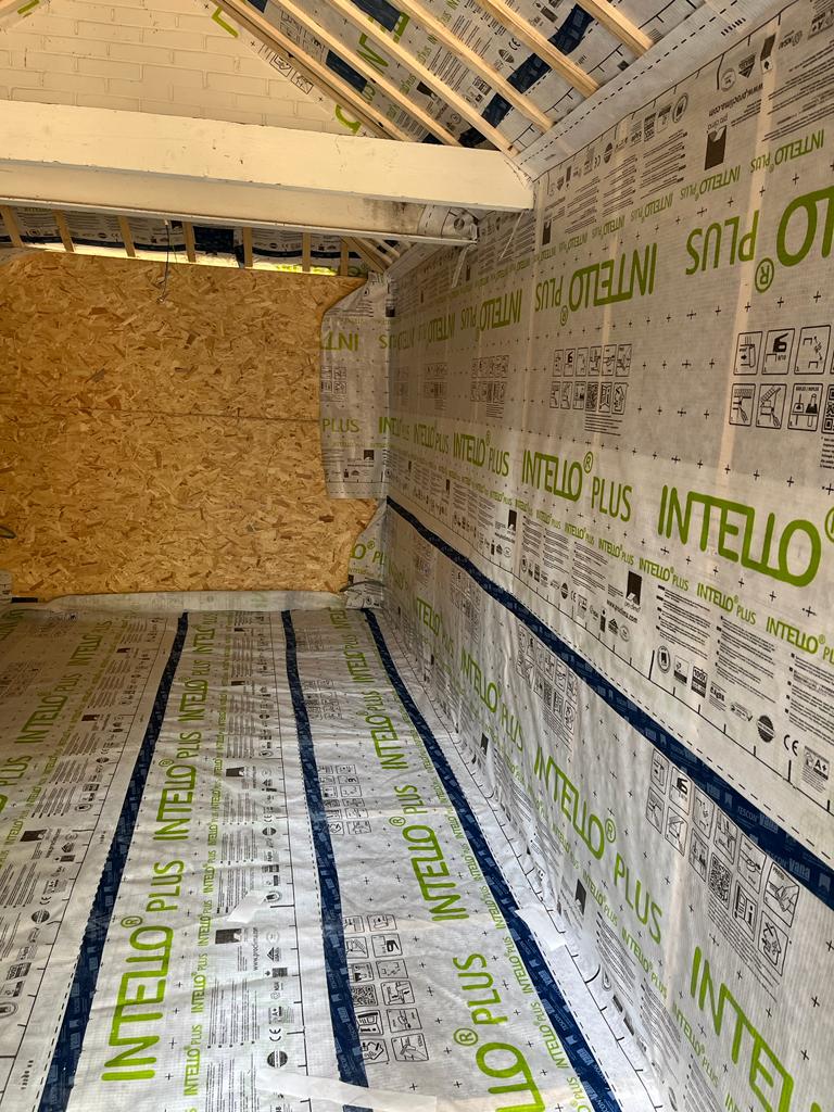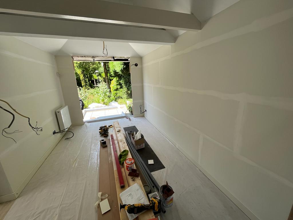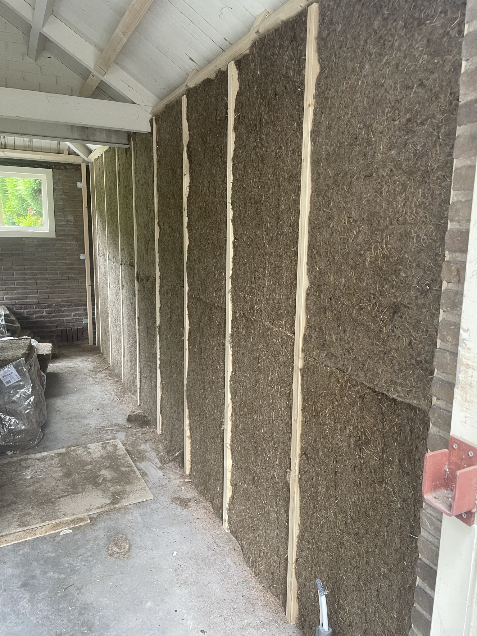 Wij hebben een garage omgetoverd tot werkruimte door de gevels, het dak en de vloer te isoleren. Hiervoor hebben wij gebruik gemaakt van duurzaam ecologische bouwmaterialen zoals hout, grasvezelisolatie en Agepan beplating welke vrij van formaldehyde en eco vriendelijk is.